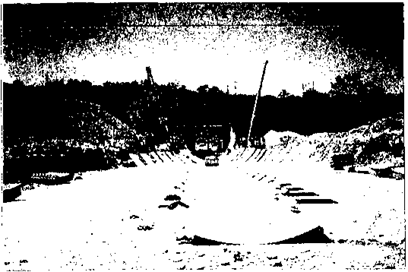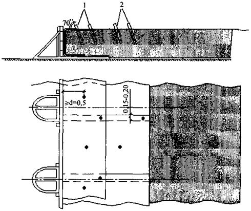 Армирование грунта - выполняется полотнищами геотекстильной арматуры, укладываемой при послойной отсыпке грунта, для усиления несущей способности при сопротивлении на сжатие и срез грунтовых массивов и восприятия части растягивающих напряжений в грунтовой обойме МГТ и в теле насыпи при недостаточной ее устойчивости. Армирование выполняется по расчету.