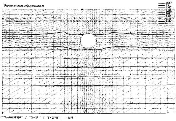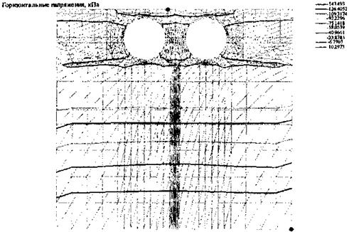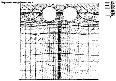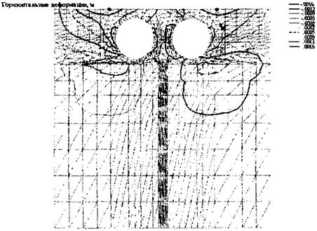 Результаты расчета (рис. И.3 - И.9) показывают, что металл труб работает в упругой стадии и имеет достаточно большой запас прочности по допустимым напряжениям. В теле насыпи нет зон предельного состояния. Деформации вдоль насыпи достаточно равномерны, а трубы не оказывают на их величины существенного влияния. Горизонтальные и вертикальные деформации труб не превышают допустимых величин и не могут повлиять на их работоспособность.