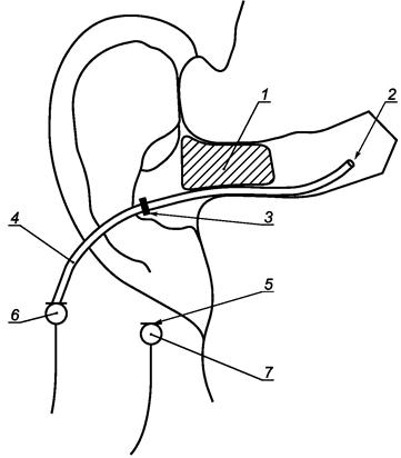 Осторожно вставляют удлинительную трубку рабочего микрофона во вход ушного канала, наблюдая за показаниями рабочего микрофона.
