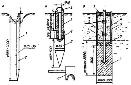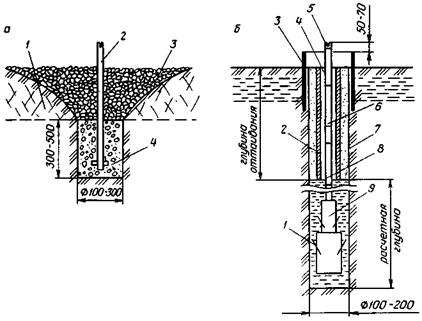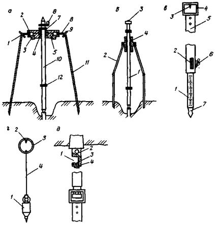 При определении величин сдвижений в ожидаемой зоне внезапного образования воронок и провалов следует закладывать реперы особой конструкции, позволяющие проводить дистанционные измерения. Схематическое изображение конструкций таких реперов приведено в прил. 2.