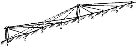 2.7. Каждая профильная линия должна состоять из опорных и рабочих реперов. Опорные реперы закладывают на концах профильных линий вне зоны сдвижения земной поверхности. Число их на каждом конце профильной линии должно быть не менее двух. Расположение опорных реперов только на одном конце профильной линии допускается, если по условиям рельефа местности или по другим причинам нельзя закладывать реперы по обоим концам линии.