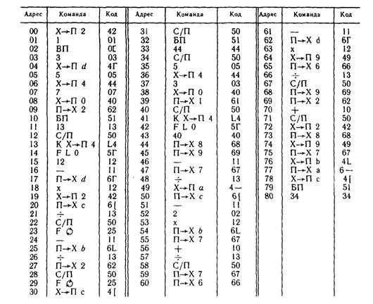 При выполнении этой операции после набора 103 ВП 99 на индикаторе появится сигнал ошибки ЕRRОR. Следует продолжить ВП В ↑, на индикаторе высветится сигнал ЕОЗ, его направляют в первый регистр памяти.