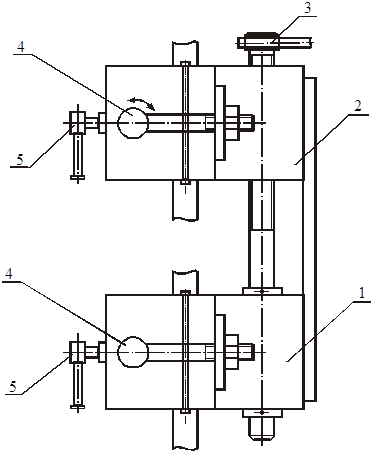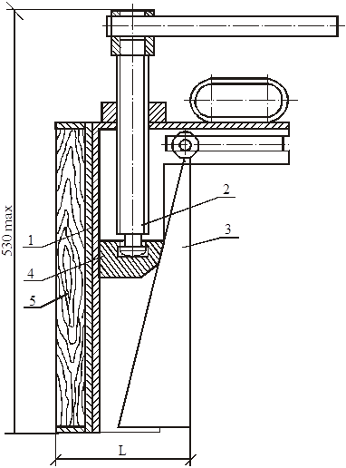 1 - штанга телескопическая; 2 - фиксаторы; 3 - резьбовая стяжка; 4 - гайка; 5 - крюк.