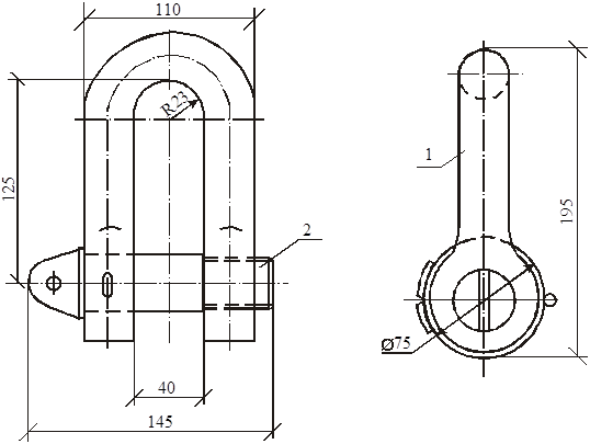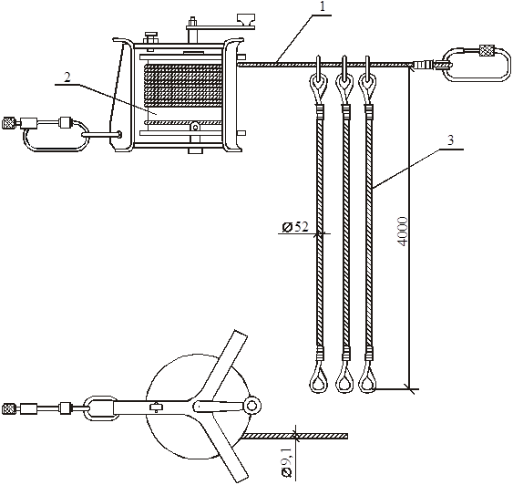 1 - обойма; 2 - карабин; 3 - винтовая стяжка; 4 - трос