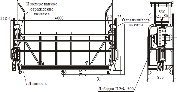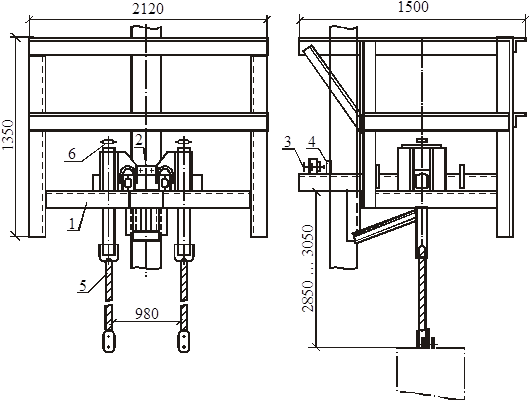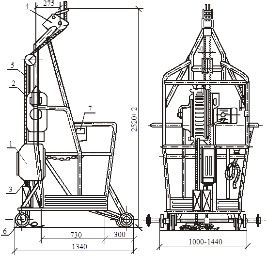 1 - направляющий канат; 2 - барабан; 3 - переходные канаты