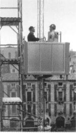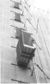 Монтаж подъемника производиться путем поднятия на крышу кабины оцинкованных секций мачты длиной 1,5 м монтажным краном, что позволяет монтировать каждый подъемник исключительно с помощью собственных механизмов и устраняет необходимость в подвижных кранах.