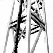 Мачты грузопассажирских подъемников изготавливаются из труб и сортового проката. Мачты из труб более сложны в изготовлении, однако они обладают большей жесткостью и имеют меньшее аэродинамическое сопротивление ветру. Мачта подъемника может быть выполнена из уголков (направляющих) и труб (раскосы), а горизонтальные связи (поперечины) - из швеллеров и уголков. Мачту каждого подъемника собирают из рядовых и верхней секций.