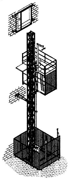 Основными узлами подъемников являются: мачта, кабина, машинное отделение, механизм подъема, кронштейны крепления.