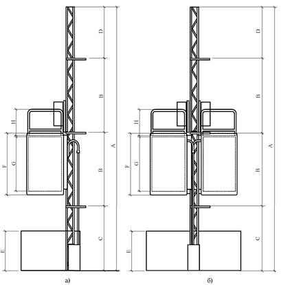 Максимальная высота мачты над первым анкером (м) D |