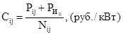 Cij - ставка платы за технологическое присоединение в классе напряжения i и (или) диапазоне мощности j (руб./кВт);