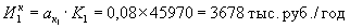 И'1 = 152 + 3666 + 6 = 3824 тыс. руб./год