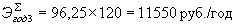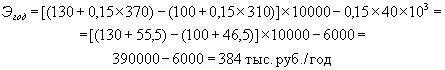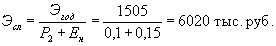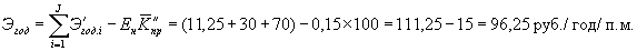 Эгод = ΔИ + EнΔK = (aк + Eн)ΔK = (0,05 + 0,15)×115 = 23 тыс. руб./год