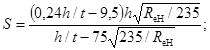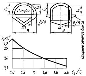 Примечание. Для наливных судов с продольными встроенными грузовыми емкостями, включаемыми в эквивалентный брус, под высотой H следует понимать высоту до верхней кромки емкости. |