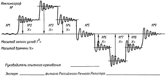.2 протокол испытаний, в котором необходимо указать вес судна во время испытаний, осадки носом и кормой, положение центра тяжести по высоте и длине судна, начальную метацентрическую высоту, глубину акватории, наличие течения и состояние погоды во время испытаний, данные о проведенных по программе записях и измерениях;