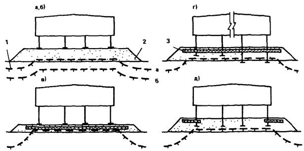 в) регулирование промерзания-протаивания природных грунтов, достигаемое подсыпкой территории застройки, применением теплоизоляции основания и др.;