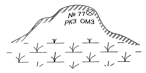 4.5. Пункты ОМС окапывают в виде круглых канав с внутренним диаметром 2,0 м, глубиной 0,3 м, шириной в нижней части 0,2 м и верхней части 0,5 м. Над центром насыпается курган высотой 0,1 м.