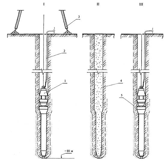 III - засыпка сухой смесью 5 скважины с уплотненной зоной 6.