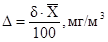 ± Δ, мг/м3, Р = 0,95, где
