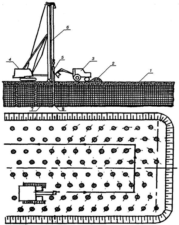 При значительной (расчетной) глубине слабого основания в дополнение к дренажным прорезям предусматривается устройство песчаных свай при погружении инвентарных труб с применением виброустановок, например виброоборудование LRB 125 - LRB 255 фирмы Либхерр; технология их устройства изложена в п.п. 9 - 11.