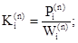 в) на каждом участке Ai (i = 1, ..., N) для текущего n-го приближения подсчитывается осадка Wi(n) и коэффициент постели Ki(n) по формулам: