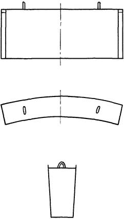 Такие блоки представляют собой сегменты с круговым пазом на верхнем торце и имеют продольные сечения в форме трапеции с меньшим основанием в нижней части, равным основанию паза. Соединение блоков в кольца и колец между собой выполняется посредством электросварки закладных деталей.