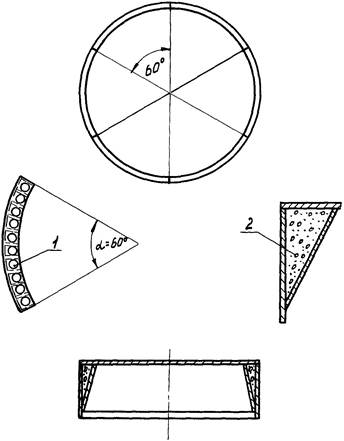 2.8. Стены колодцев диаметром 3 - 6 м в сборном варианте следует выполнять из цельных железобетонных колец. Для колодцев диаметром 7 м и более следует применять кольца из блоков, предложенных НИИ оснований и подземных сооружений (рис. 2).