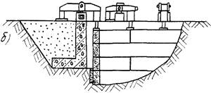 3.6. Опорную конструкцию следует выполнять в виде круговой контрфорсной подпорной стенки, возводимой в открытом котловане, с внутренними размерами в плане, превышающими на 0,5 - 0,75 м наружные размеры опускного колодца.