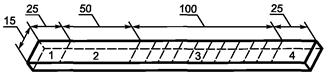 5.2.1 Элементарные пробы на точечной пробе размечают так, чтобы одна полоска не являлась продолжением другой элементарной пробы на расстоянии не менее 50 мм от края точечной пробы.