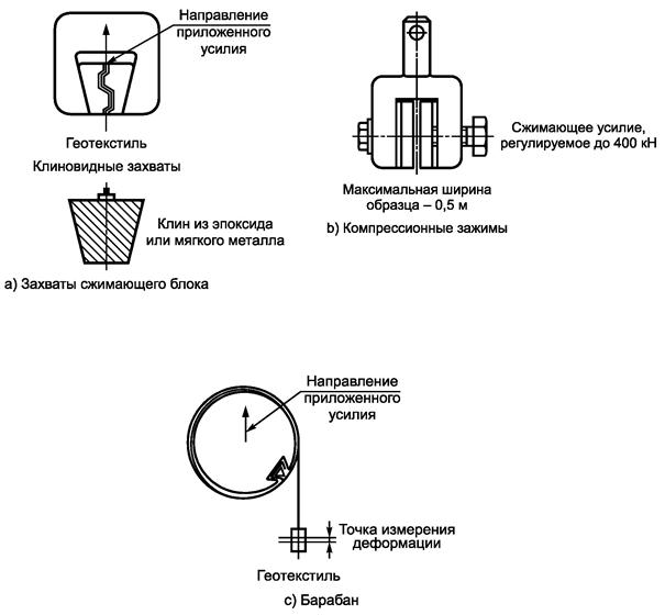 Рисунок 2 - Примеры конструкции захватов для испытания геотекстиля на растяжение (лист 2)