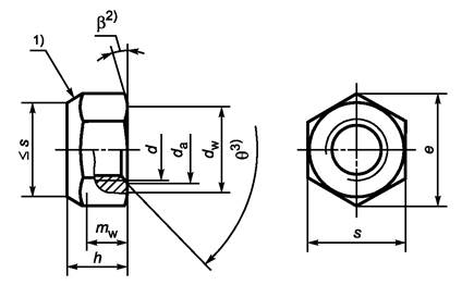 Размеры гаек соответствуют размерам, указанным в ИСО 8674, за исключением размеров mw и hmax.