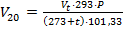 Приведение объёма воздуха к стандартным условиям при температуре 293 К (20 °С) и атмосферном давлении 101,33 кПа (760 мм рт. ст.) производят по формуле: