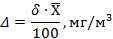 где d - норматив оперативного контроля сходимости, мг/м3;