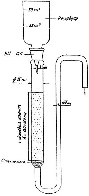 Через предварительно регенирированную кадмиевую колонку пропускают со скоростью 5 см3/мин сначала 25 см3 приготовленного раствора азотнокислого калия, когда резервуар над колонкой опустеет, его промывают два раза, используя каждый раз по 15 см3 воды.