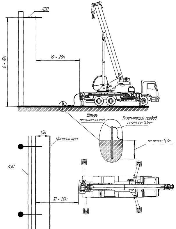 Рис. Схема заземления крана при испытании прибора защиты крана в зоне ЛЭП