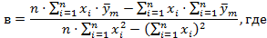 y = a + в⋅х, где |