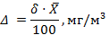 ± Δ мг/м3 , Р = 0,95,