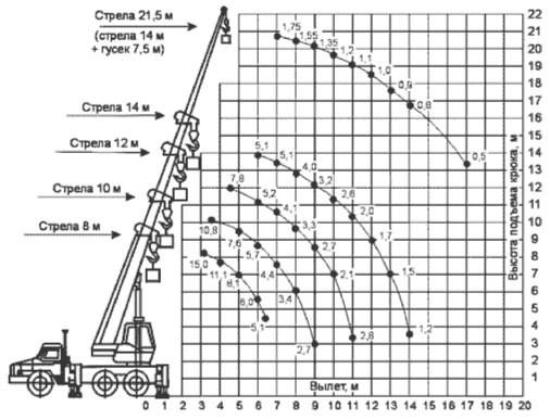 Автокран КС-35719-3 имеет следующие грузовысотные характеристики: