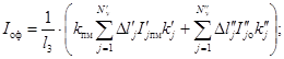 где Iопм - средний ток поезда повышенного веса за время t'x, А; kпм - коэффициент приведения токов поездов. В рассматриваемом случае однотипных поездов на каждом пути kпм = 1; k3 - длина межподстанционной зоны, км; N'y, N"y - число расчетных участков межподстанционной зоны соответственно на данном и соседнем пути; Dl'р, Dl"j - длины расчетных участков, км; I'jпм, I"jo - средние токи на j-м участке соответственно поезда повышенного веса на рассматриваемом пути и поезда на соседнем пути, А; k'j, k"j - доли тока поезда на j-м участке данного и соседнего пути, отнесенные к рассматриваемому фидеру: