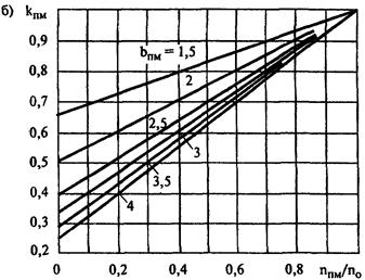 где kэпм - коэффициент, определяемый по рис. 3, а в зависимости от параметра bпм и отношения числа поездов nпм/no; Iоф - приведенное значение тока фидера от одиночных поездов, которое рассчитывается по формулам (3.2) - (3.4) с учетом коэффициента, определяемого по рис. 3, б.