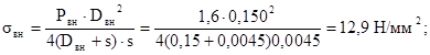 σраст - растягивающее окружное напряжение от внутреннего давления, Н/мм2;
