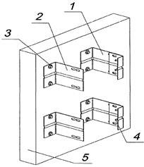 1 - кронштейн составной; 2 - кронштейн опорный; 3 - анкер; 4 - заклепки (самонарезающие винты); 5 - стена.
