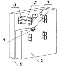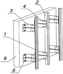 1 - профиль шляпный 23; 2 - профиль L-образный; 3 - кронштейн составной; 4 - кронштейн опорный; 5 - анкер; 6 - стена.