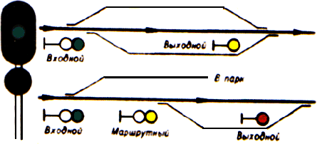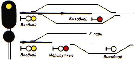 выходные - разрешающие или запрещающие поезду отправиться со станции на перегон;