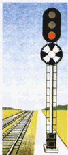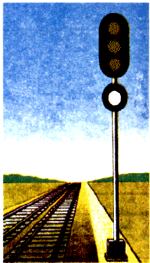 два желтых огня - "Разрешается поезду следовать на станцию с уменьшенной скоростью на боковой путь и готовностью остановиться; следующий светофор закрыт" (рис. 2.3);