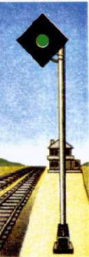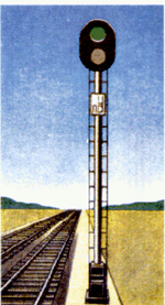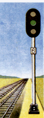 один зеленый огонь - "Разрешается поезду отправиться со станции и следовать с установленной скоростью; перегон до следующей станции свободен";