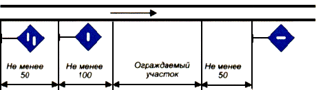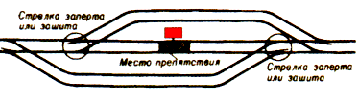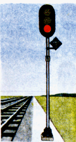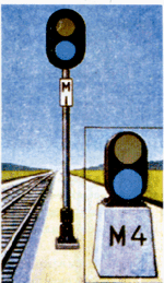 заградительные - требующие остановки при опасности для движения, возникшей на переездах, крупных искусственных сооружениях и обвальных местах, а также при ограждении составов для осмотра, ремонта и очистки вагонов на станциях;