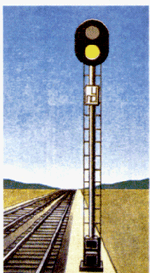 один желтый огонь - "Разрешается поезду следовать на станцию с готовностью остановиться; следующий светофор (маршрутный или выходной) закрыт" (рис. 2.2);
