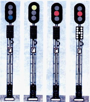 Сигнальные огни на светофорах применяются: нормально горящие, нормально не горящие (на заградительных и предупредительных к ним, а также повторительных), немигающие и мигающие (периодически загорающиеся и гаснущие).