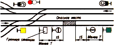 При следовании по неправильному пути, а также во время тумана, метели и при других неблагоприятных условиях, понижающих видимость, этот сигнал повторяется несколько раз.