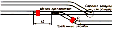 При движении по станционным путям и стрелочным переводам съемная ремонтная вышка и путевой вагончик, кроме того, с обеих сторон должны быть ограждены на расстоянии не менее 15 м переносными или ручными красными сигналами, переносимыми одновременно с передвижением съемной ремонтной вышки и путевого вагончика.
